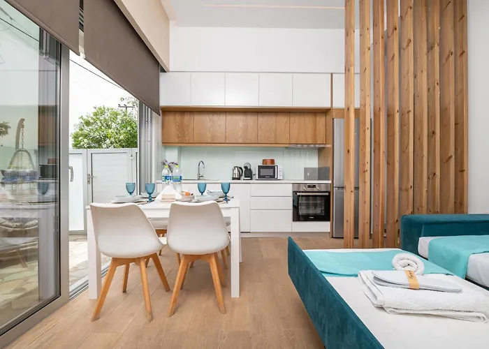 サンデッキ,サンテラス とパティオを提供する[Hyacinthus Executive Suite 5 Min To Beach]アパ-トはコス・タウンにあります. アパ-トメントは,ロ-マ時代の円形劇場から0.6キロ以内,Casa Romanaの近くにあります.